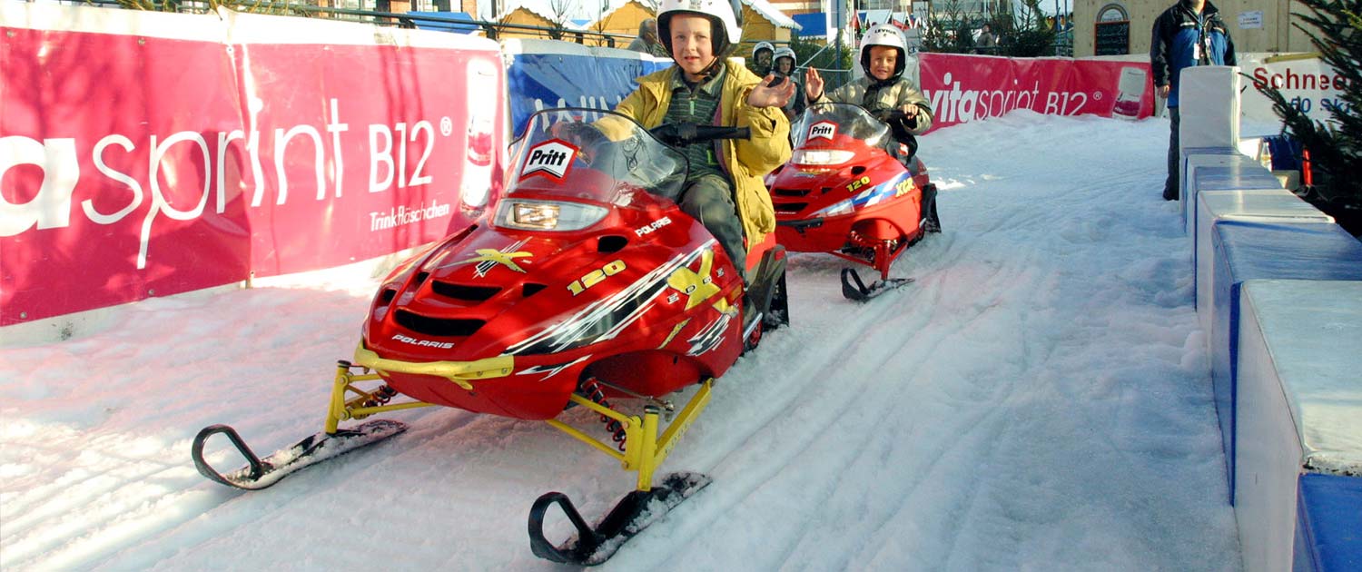 Which child would not like to ride a snowmobile on real snow? No matter what the season is, our snowmobile course for children invites kids between the ages of 6 and 14 with max. 121 lbs to a fast ride across a snowy mountain. An unusually cool activity for every aspiring driver!