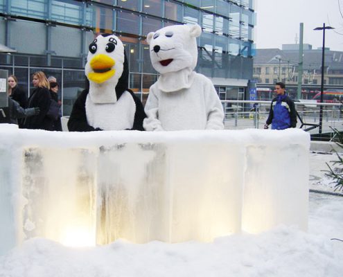 Are you looking for ice blocks? Why don´t you dare to try something new? Discover the diversity of our snow blocks. Whether for the construction of a snow bar, as basis for snow sculptures, as treasure snow block or snow refrigerator – our snow blocks are a multifunctional eye-catcher in summer and winter.